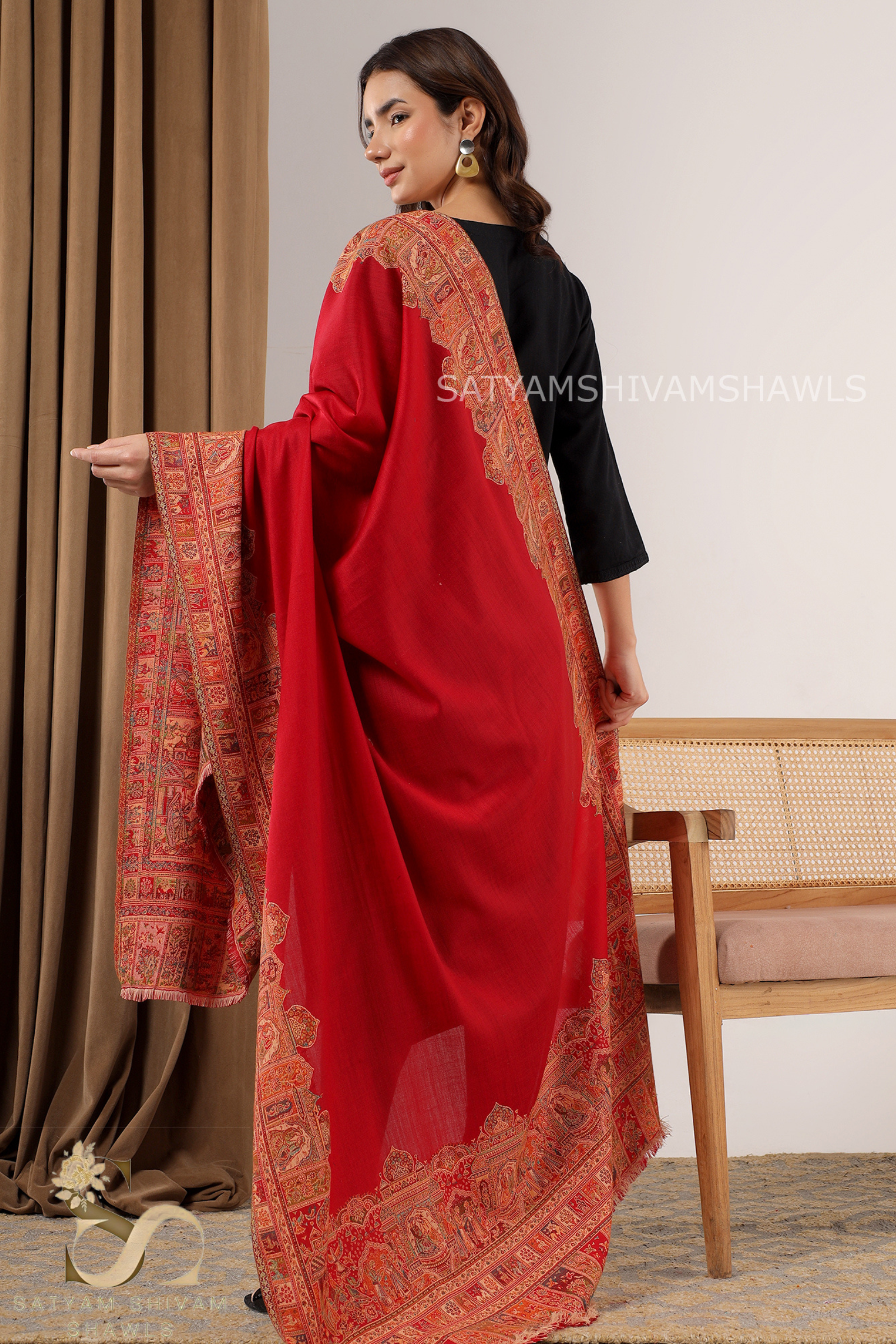 Fine wool pashmina 12 count autentic kani shikar desingn lohi ,big size