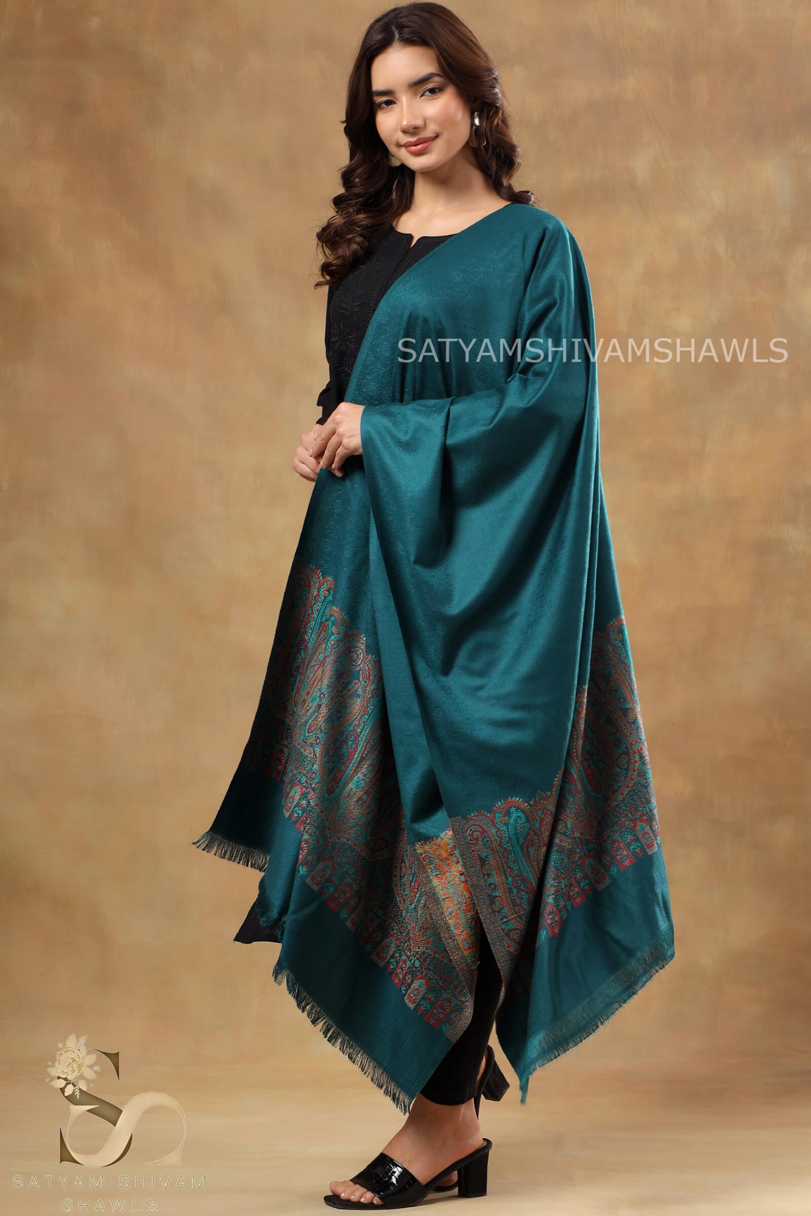 Fine wool pashmina 12 count autentic kani shikar desingn lohi ,big size