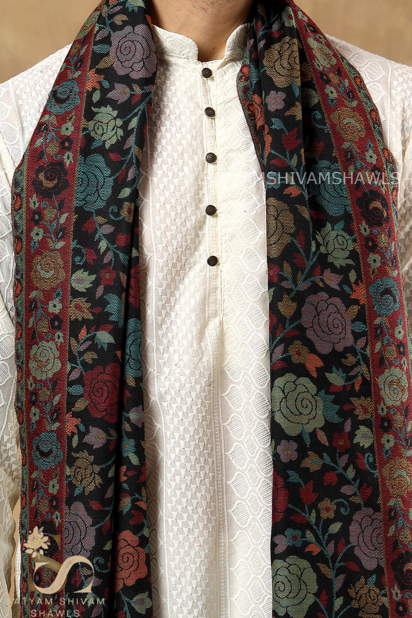 ARABIC ROSE KANI WOVEN LUXURY PASHMINA MENS STOLE,BLACK