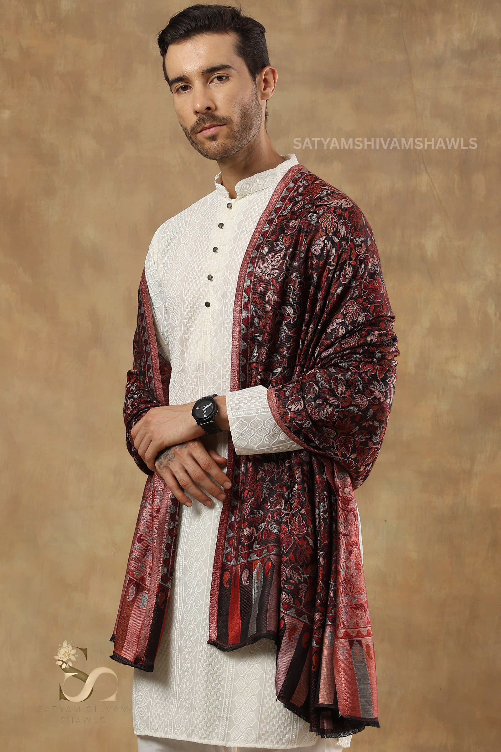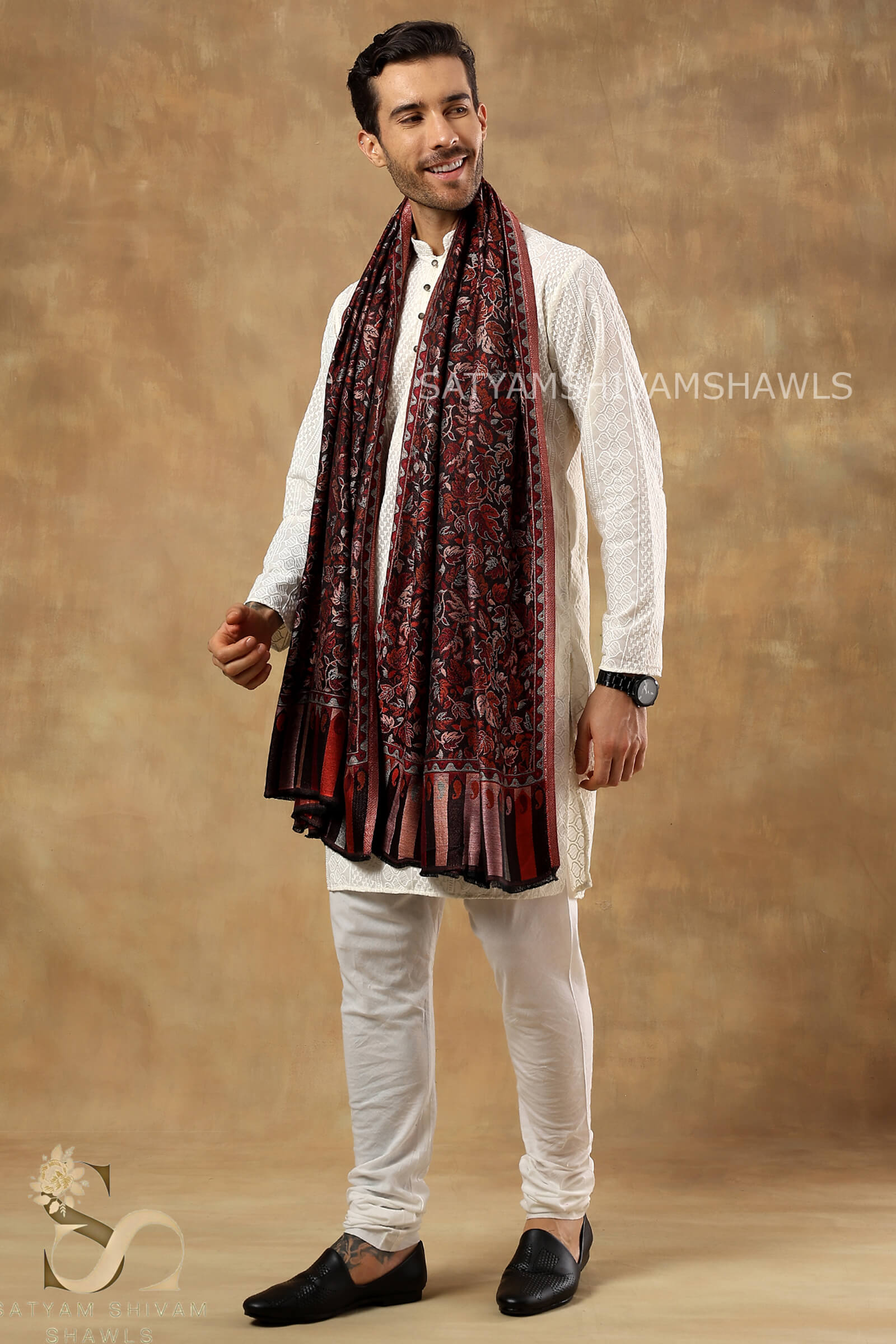 CHINAR KASHMIRI VINTAGE COLOUR COMBINATION SILK PASHMINA MENS SHAWLS,VINTAGE BLACK