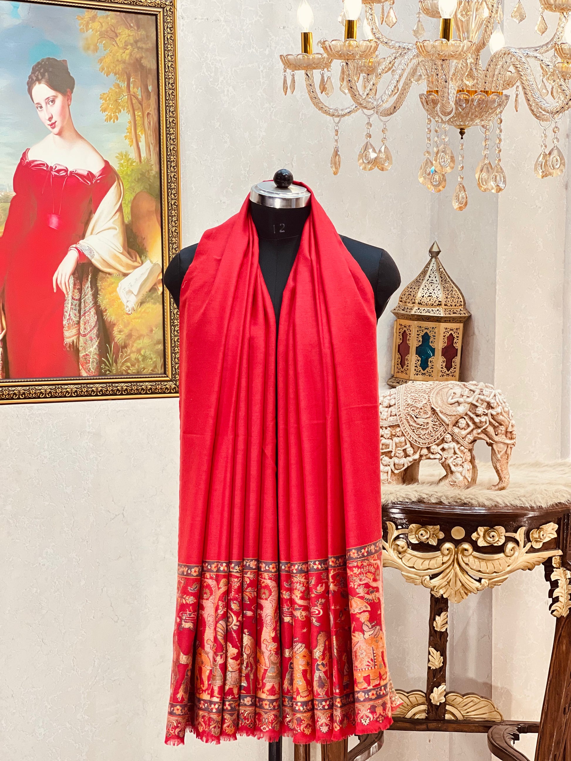 Fine wool pashmina 12 count autentic kani shikar desingn lohi ,big size