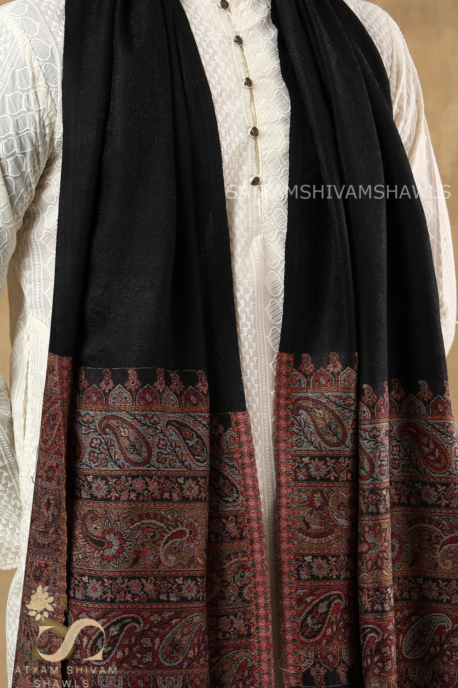 EXTRA FINE WOOL KASHMIRI PAISLEY PALLA MENS STOLE, BLACK