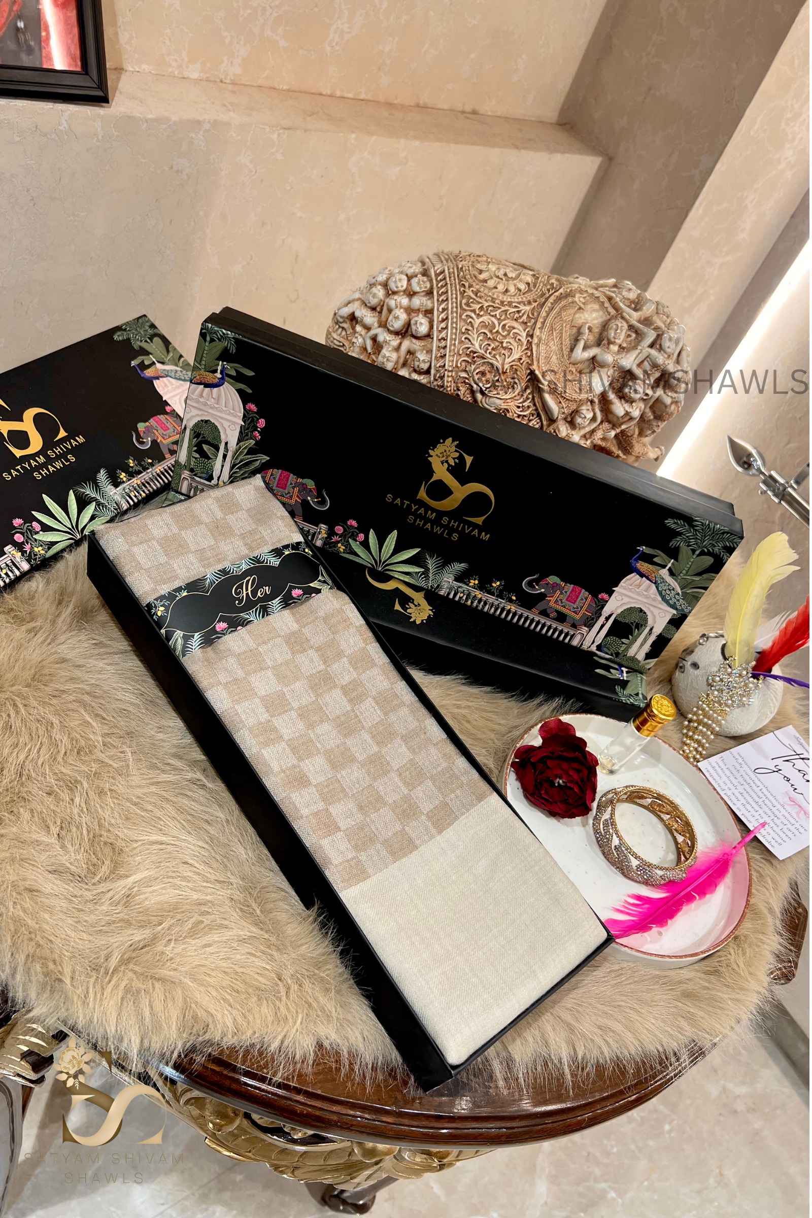 - Customer care is reachable at care@SATYAMSHIVAMSHAWLS.COM, +91 9888808776