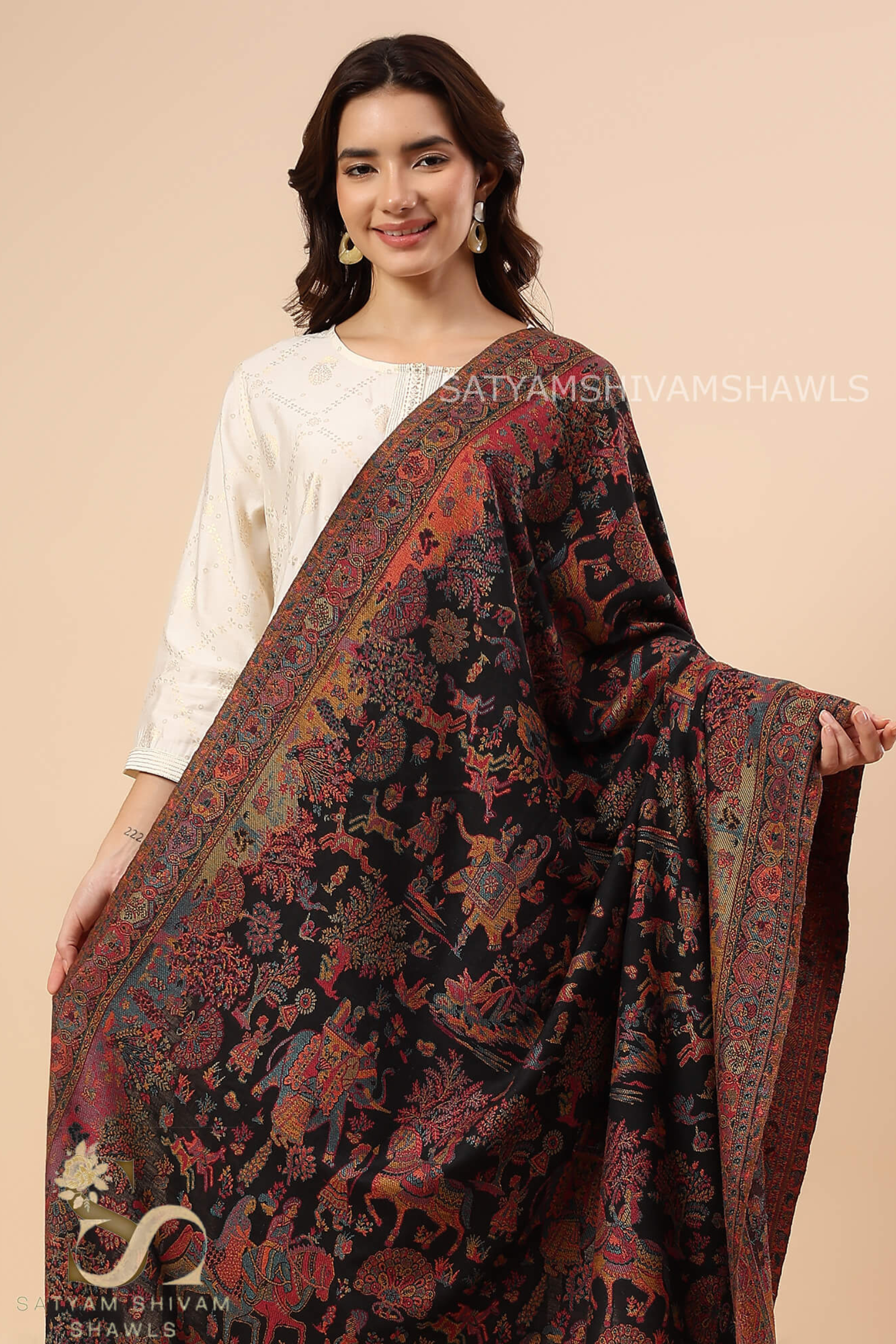 "GARDEN OF DELIGHT" PASHMINA KANI SHIKARGAH DHOLI THEME DESIGN SHAWL,WARM AND SOFT