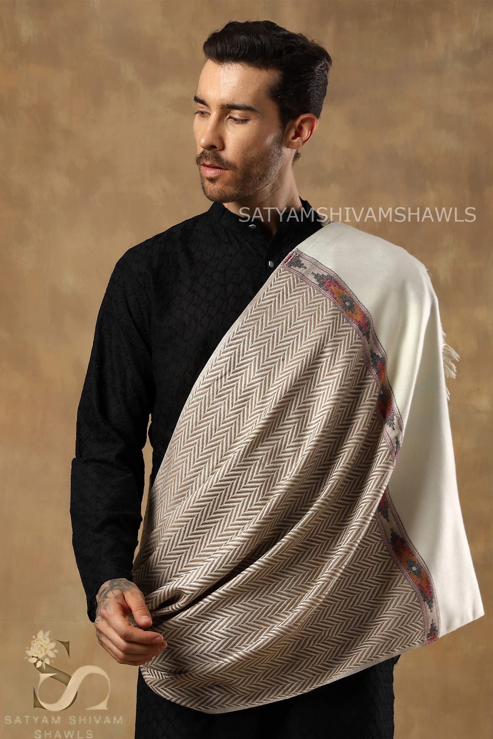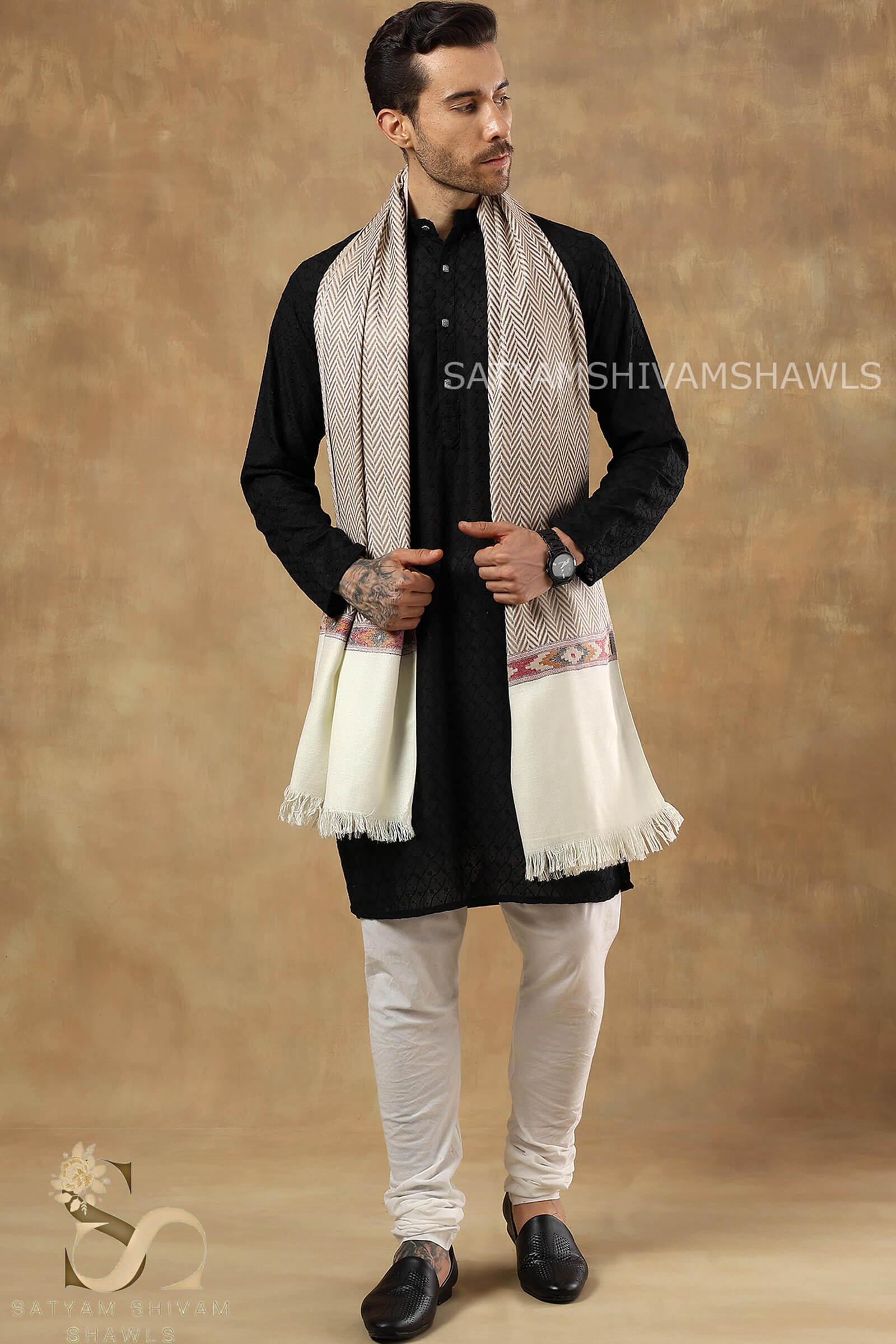 Elevate your traditional attire with the Kullu Palla men's stole, featuring a subtle self zig-zag pattern in pristine white. Crafted to offer both style and comfort, this stole adds a refined touch to any ensemble while reflecting authentic craftsmanship. Ideal for formal occasions or cultural events, it combines timeless design with versatile wearability.