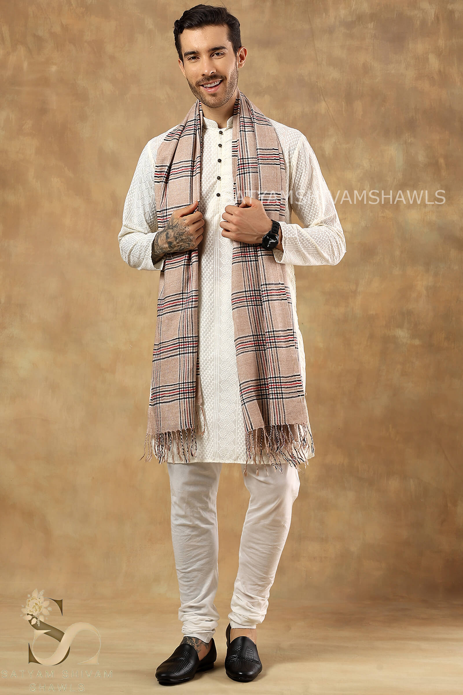 Elevate your style with this Luxury Tweed Check Wool Men's Stole in a refined skin tone. Crafted from premium wool, it offers warmth and comfort while adding a sophisticated touch to any outfit. Perfect for chilly days, this stole blends classic tweed patterns with modern elegance, making it an essential accessory for the discerning gentleman.