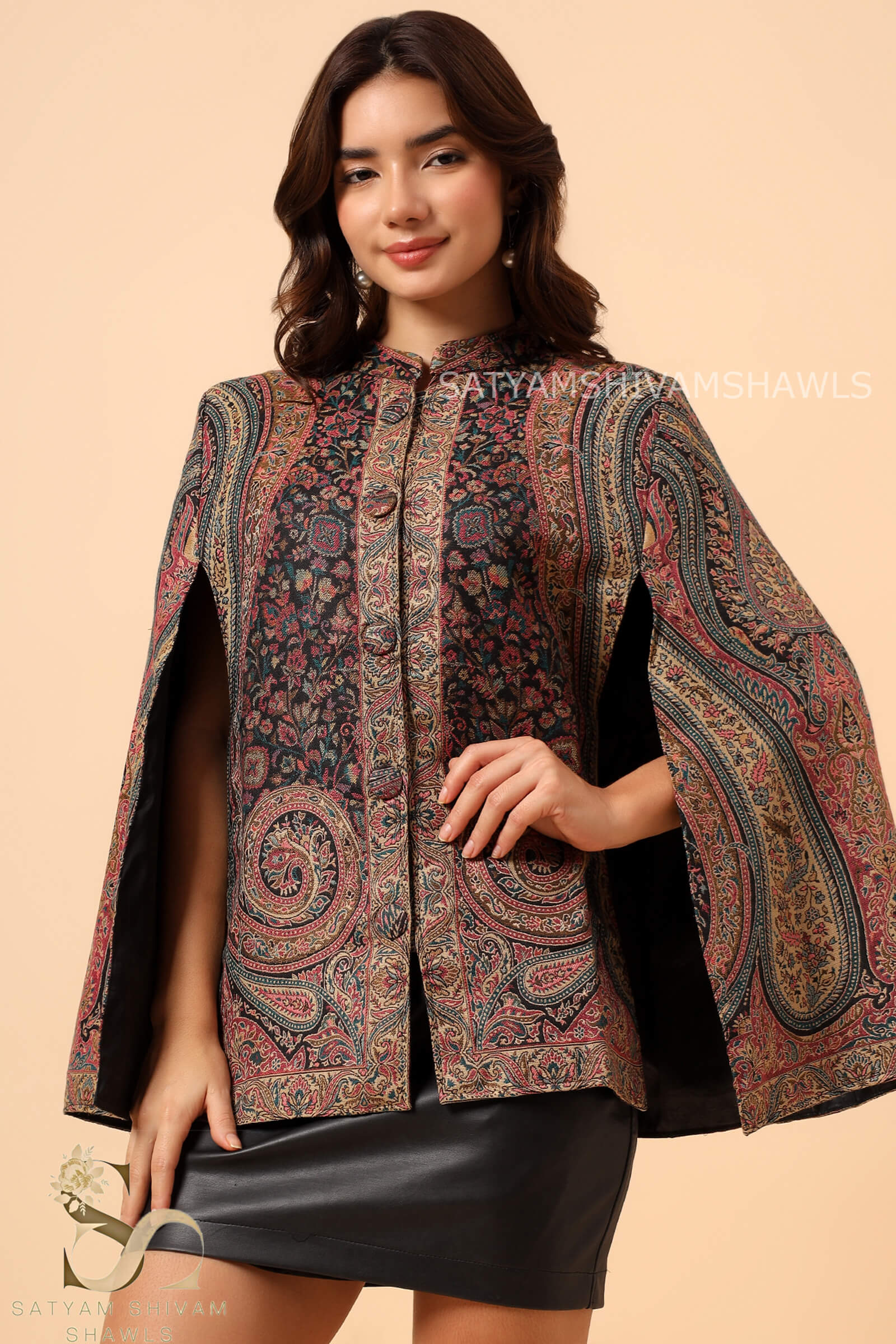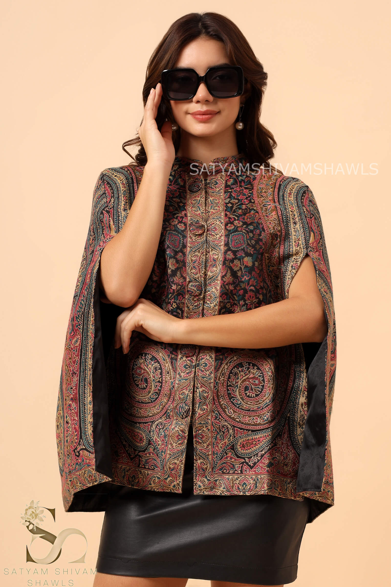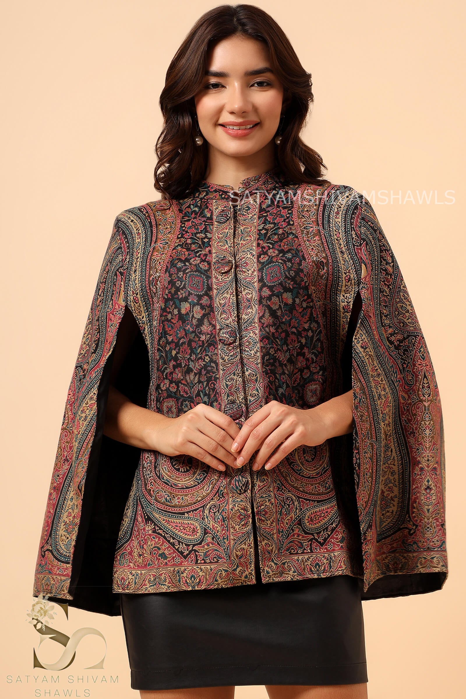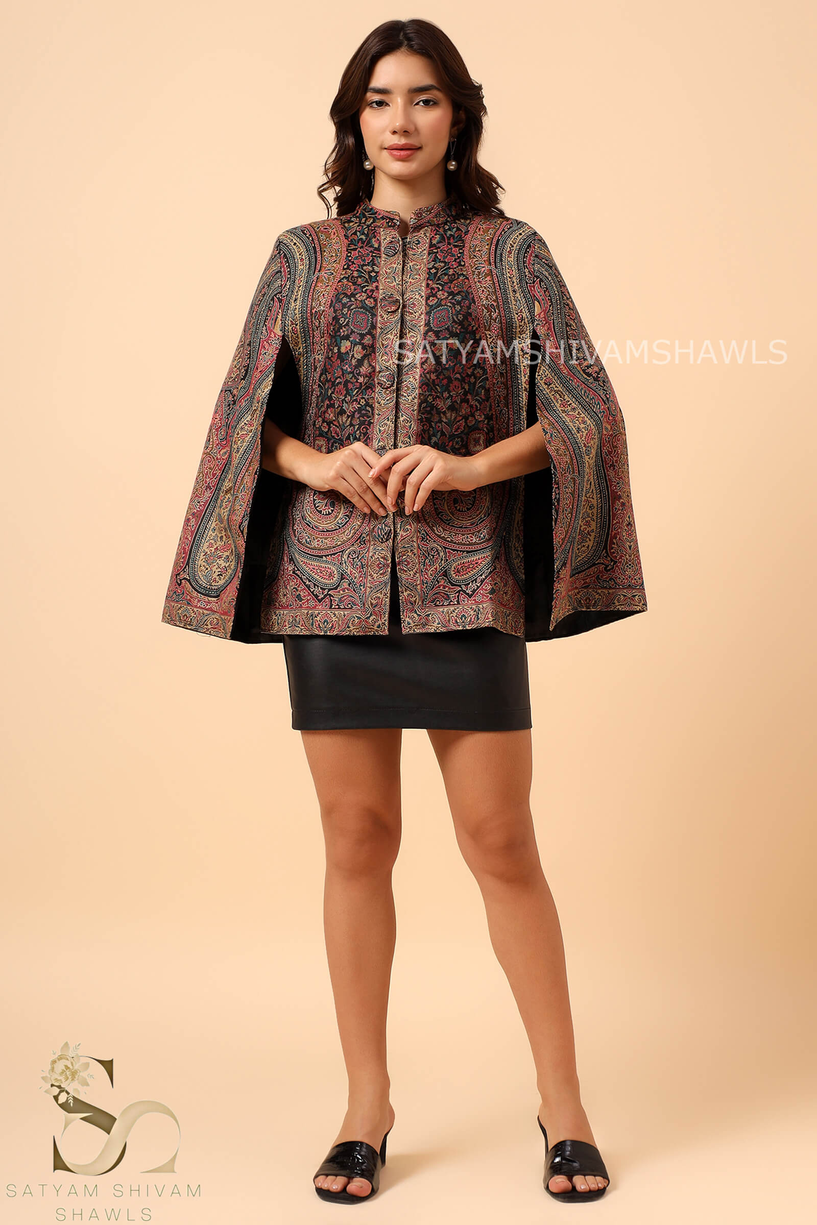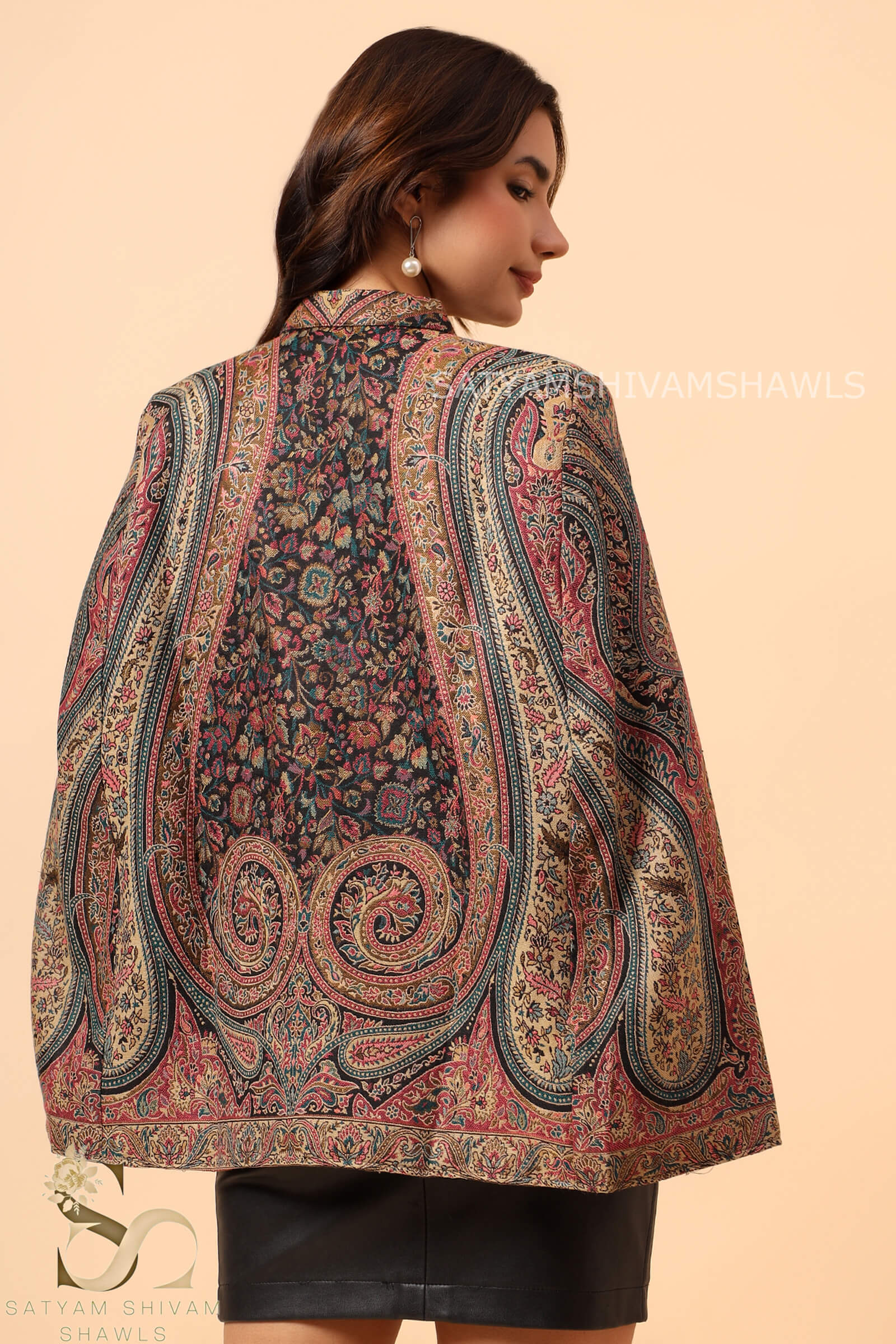 MAHEEN KASHMIRI KANI PAISLEY DESIGN CAPE ,BLACK