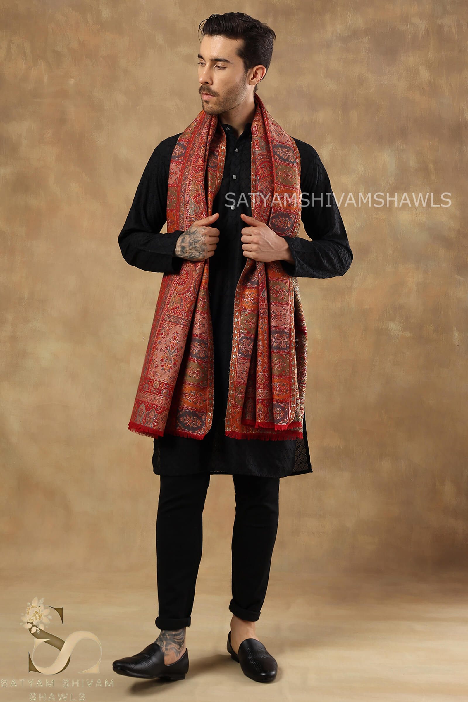 "MEHROOM BLOOM JAAL" PASHMINA KANI WEAVED MENS SHAWL