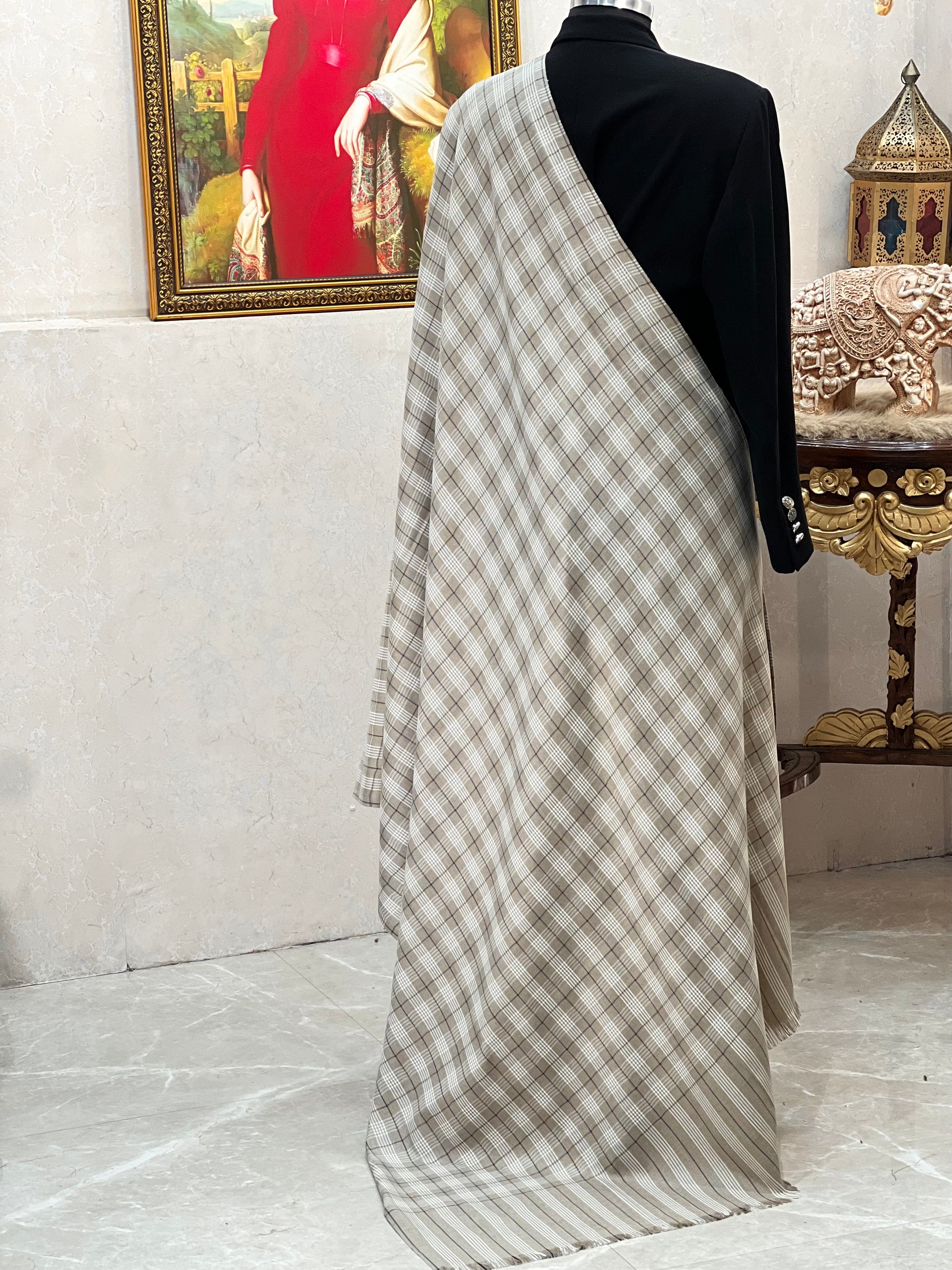 Elevate your style with this bold Men's Woven Check Shawl crafted from pure wool. Full-sized for versatile draping, its striking black check pattern adds a sharp edge to any outfit while providing cozy warmth. Perfect for those who dare to stand out in classic fashion with a fearless twist.