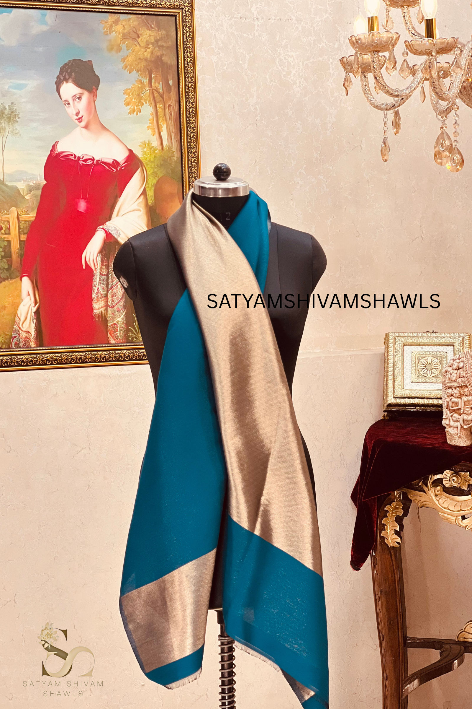 Noor-e-zari twilight reversible (STOLE) TEAL BLUE