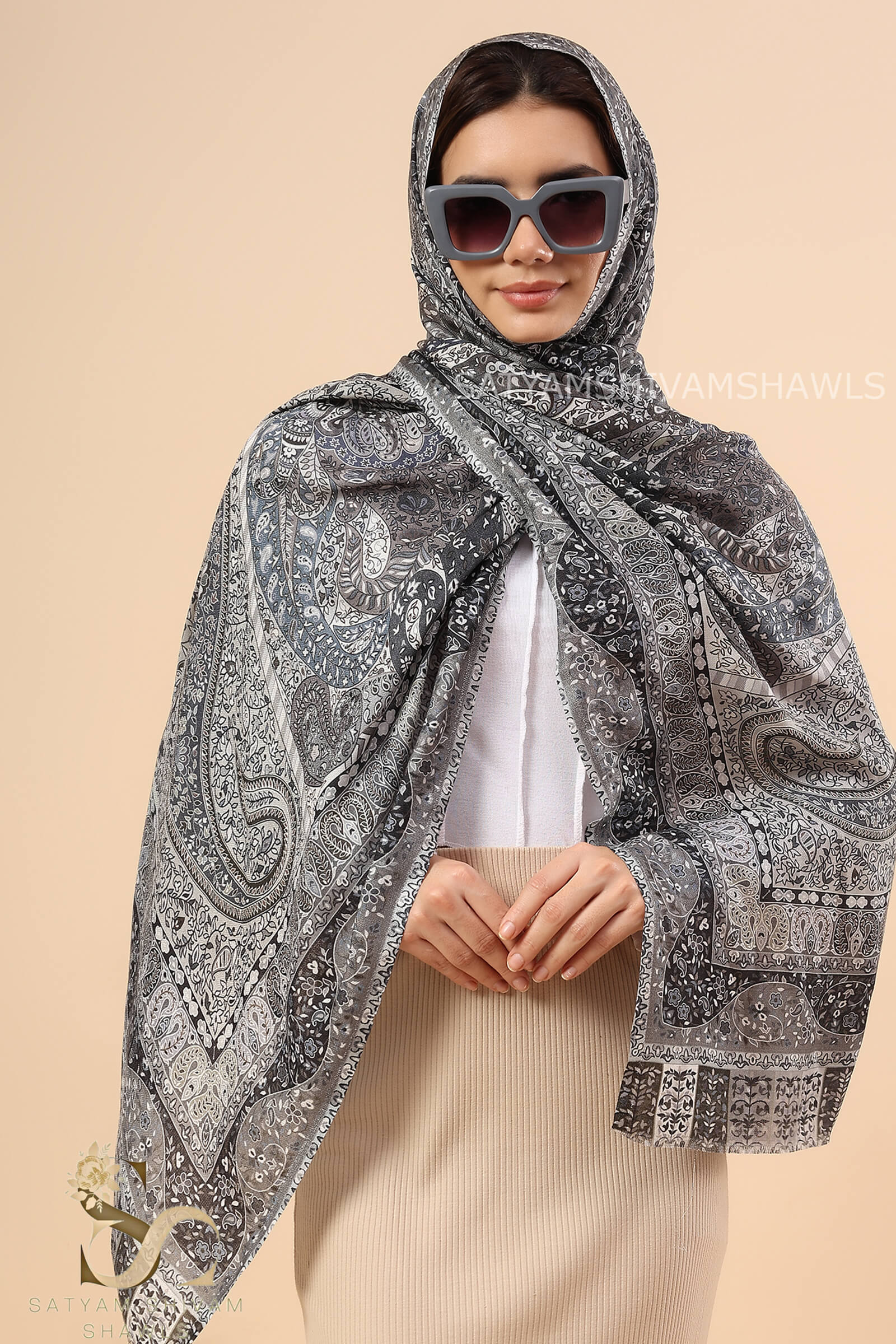 - The intricate paisley design, with its antique-inspired charm and intricate details, adds a touch of regal opulence and sophistication, making this shawl a true masterpiece of refined style and timeless beauty.