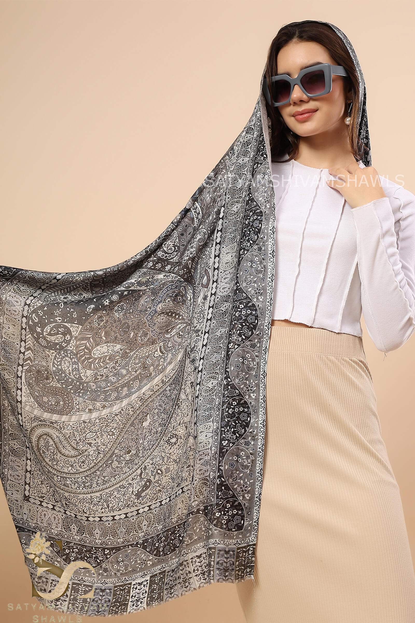 PAISLEY KALAMKARI WOMENS FINE SOFT SILK WOOL PRINT STOLE