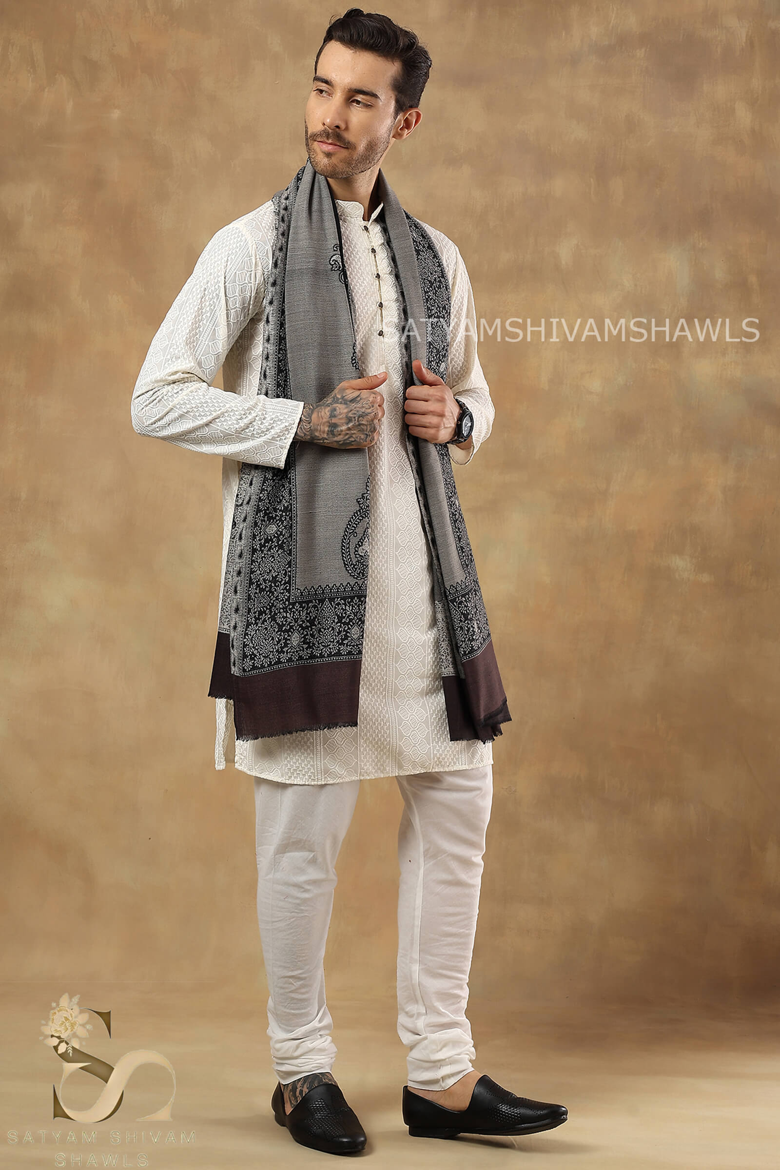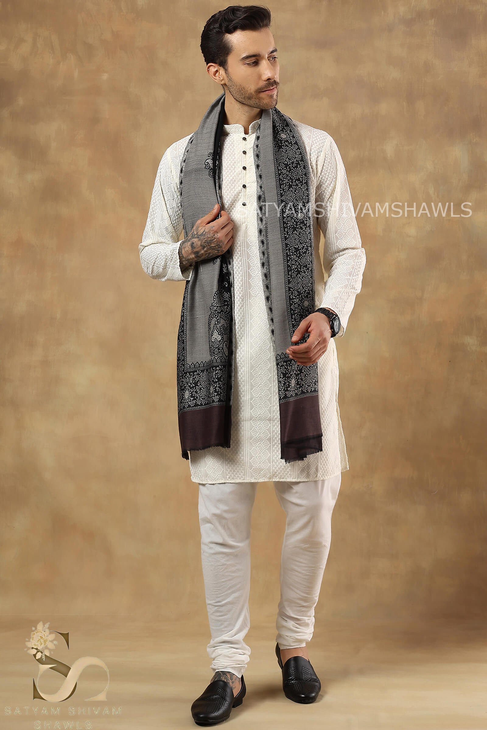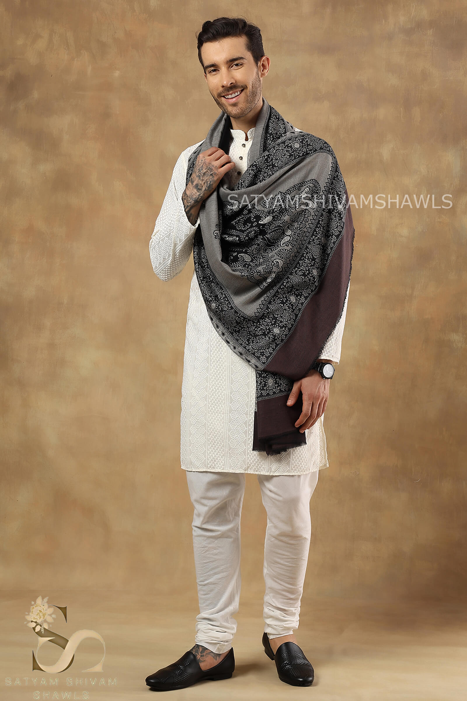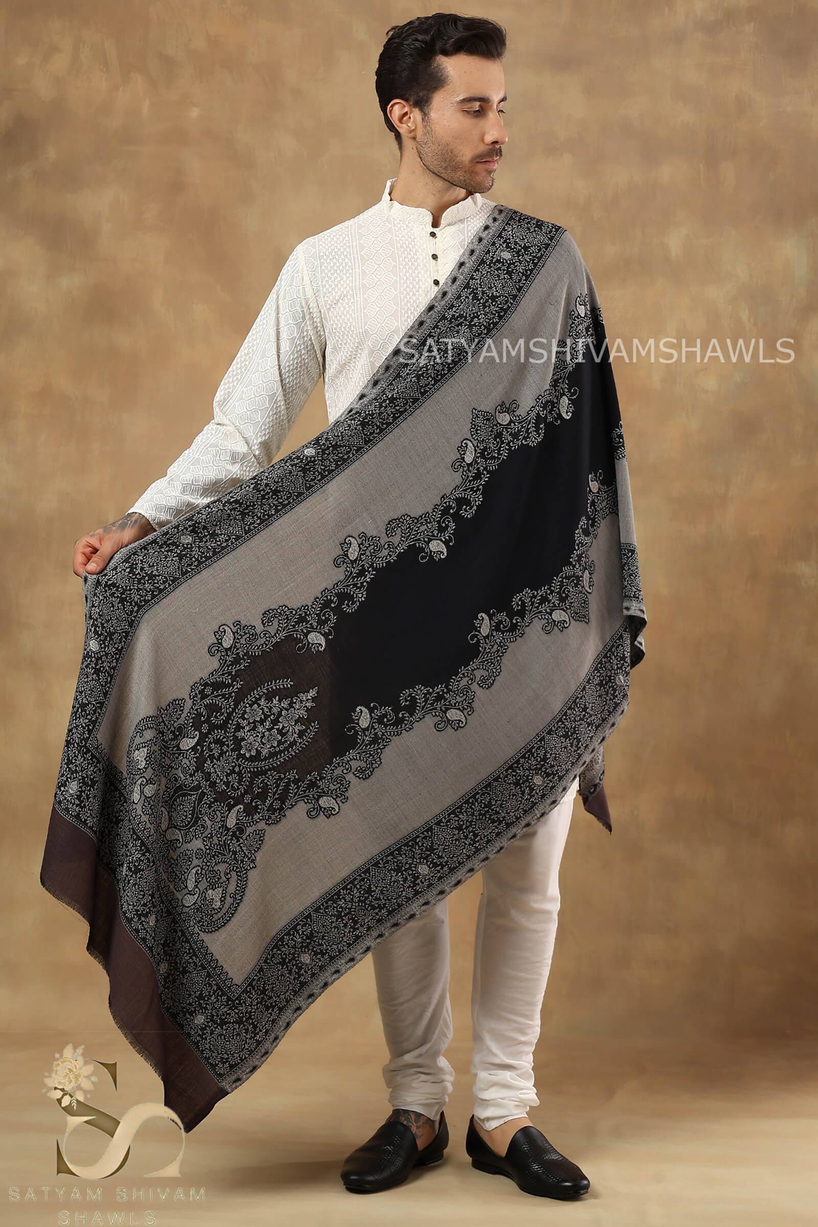 Elevate your wardrobe with the Royal Eclipse Kani men's shawl in classic black. Expertly crafted using traditional Kani weaving techniques, this shawl offers a refined blend of heritage and style. Its rich texture and deep black hue make it a versatile accessory for formal and casual occasions, providing both warmth and sophistication. Perfect for the discerning gentleman seeking timeless elegance.