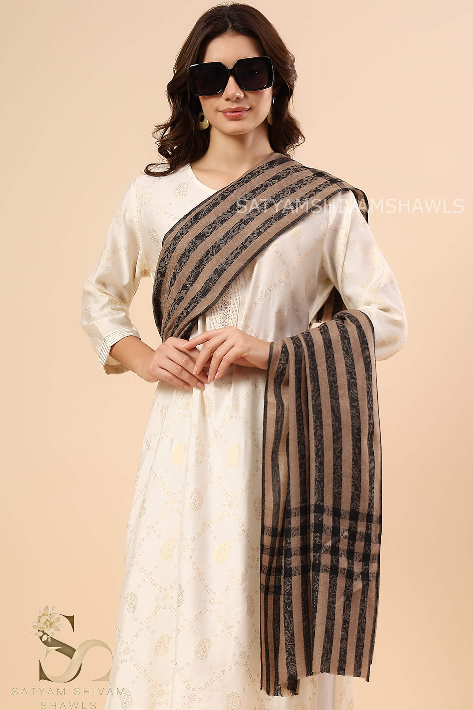 SMOKEY SELF CHECK STRIPS LUXURY PASHMINA STOLE, BLACK TOOSH