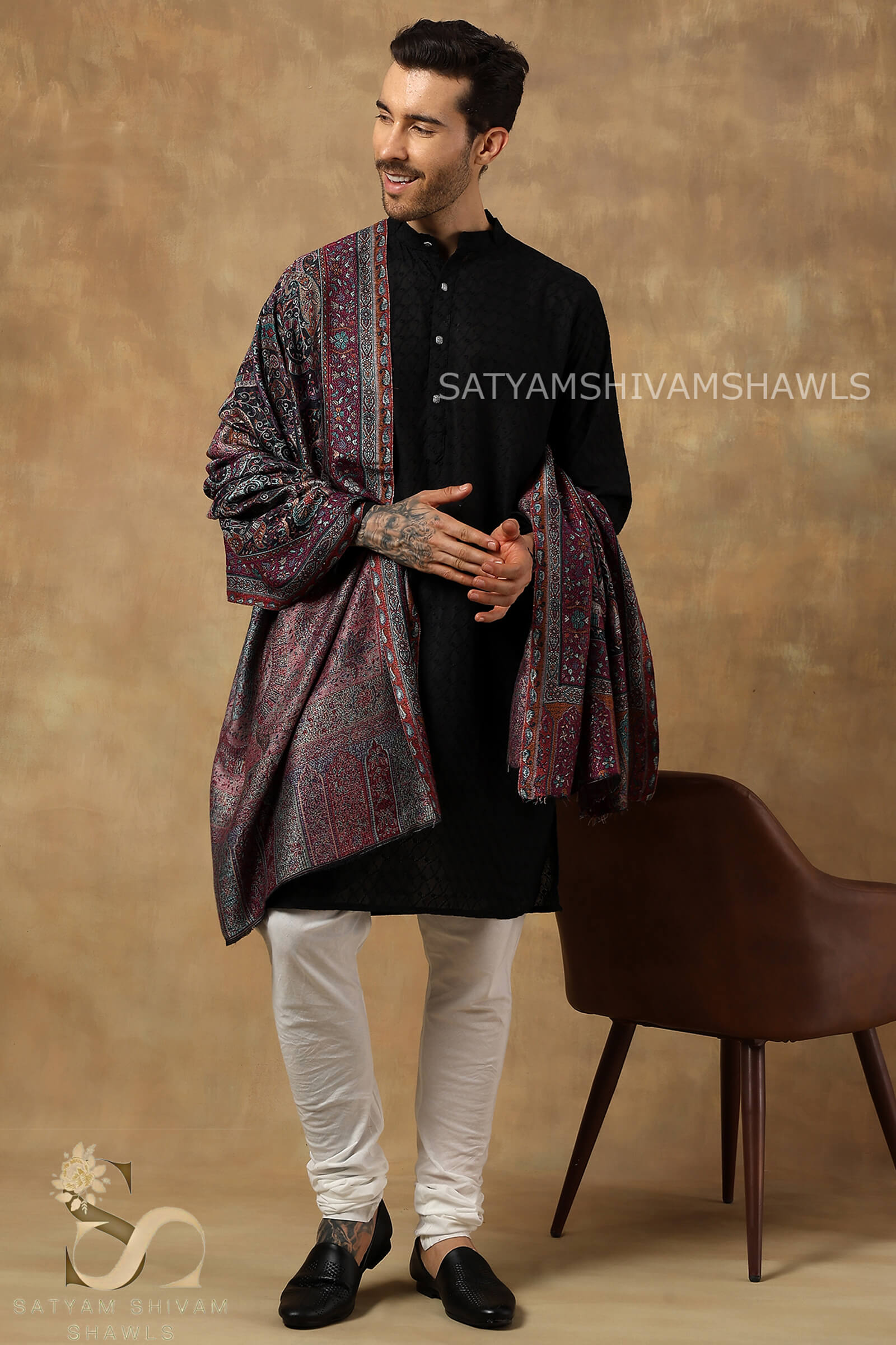 "Shaam-e-Mughal" TWILIGHT REVERSIBLE MUGHAL PALLA DESIGN SHAWL,