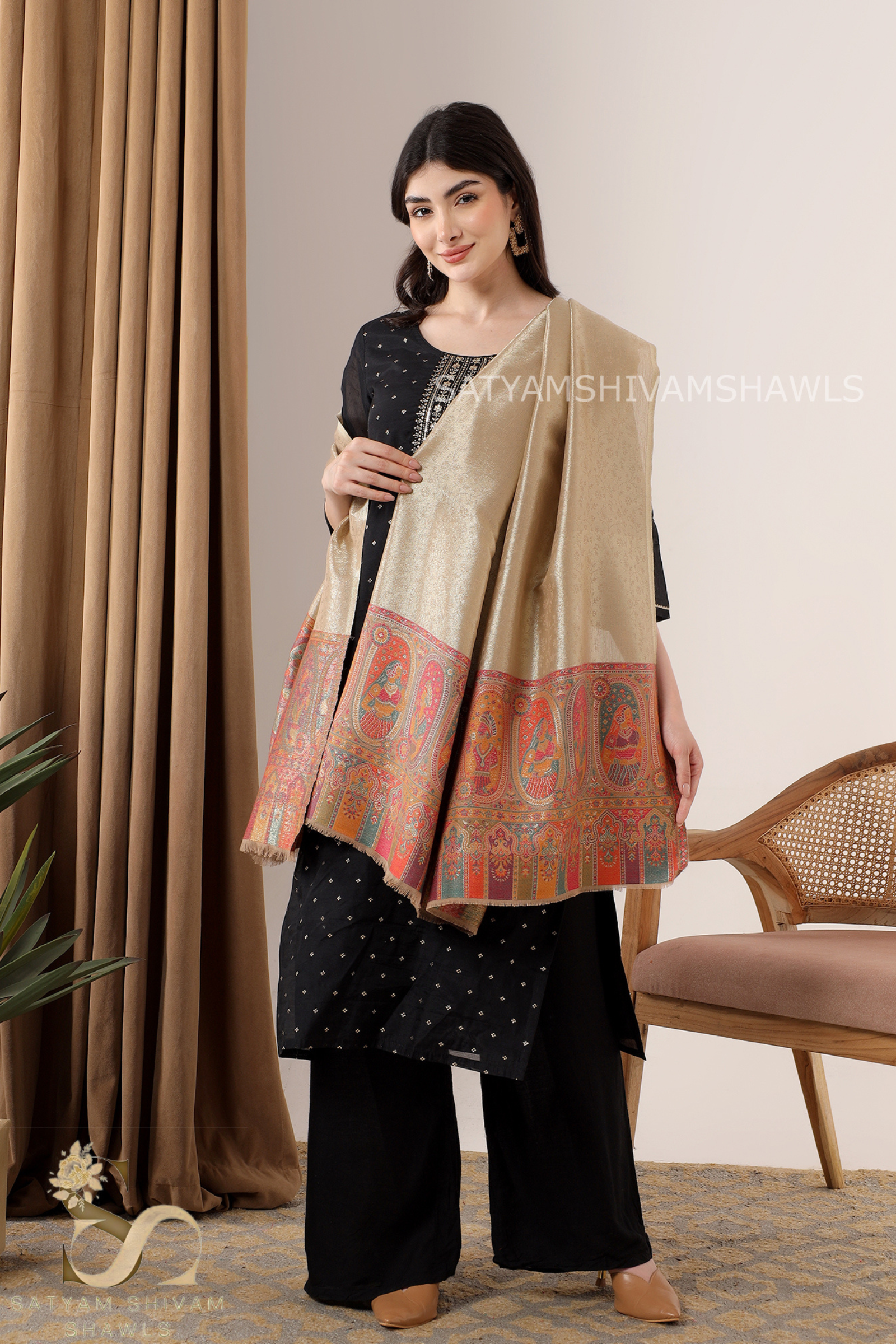 Golden Bloom Taj Mahal Shikar Desingn shawl