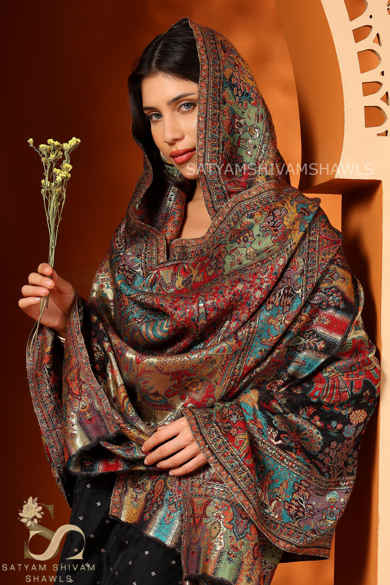 "Shaam-e-Mughal" TWILIGHT REVERSIBLE MUGHAL PALLA DESIGN SHAWL,