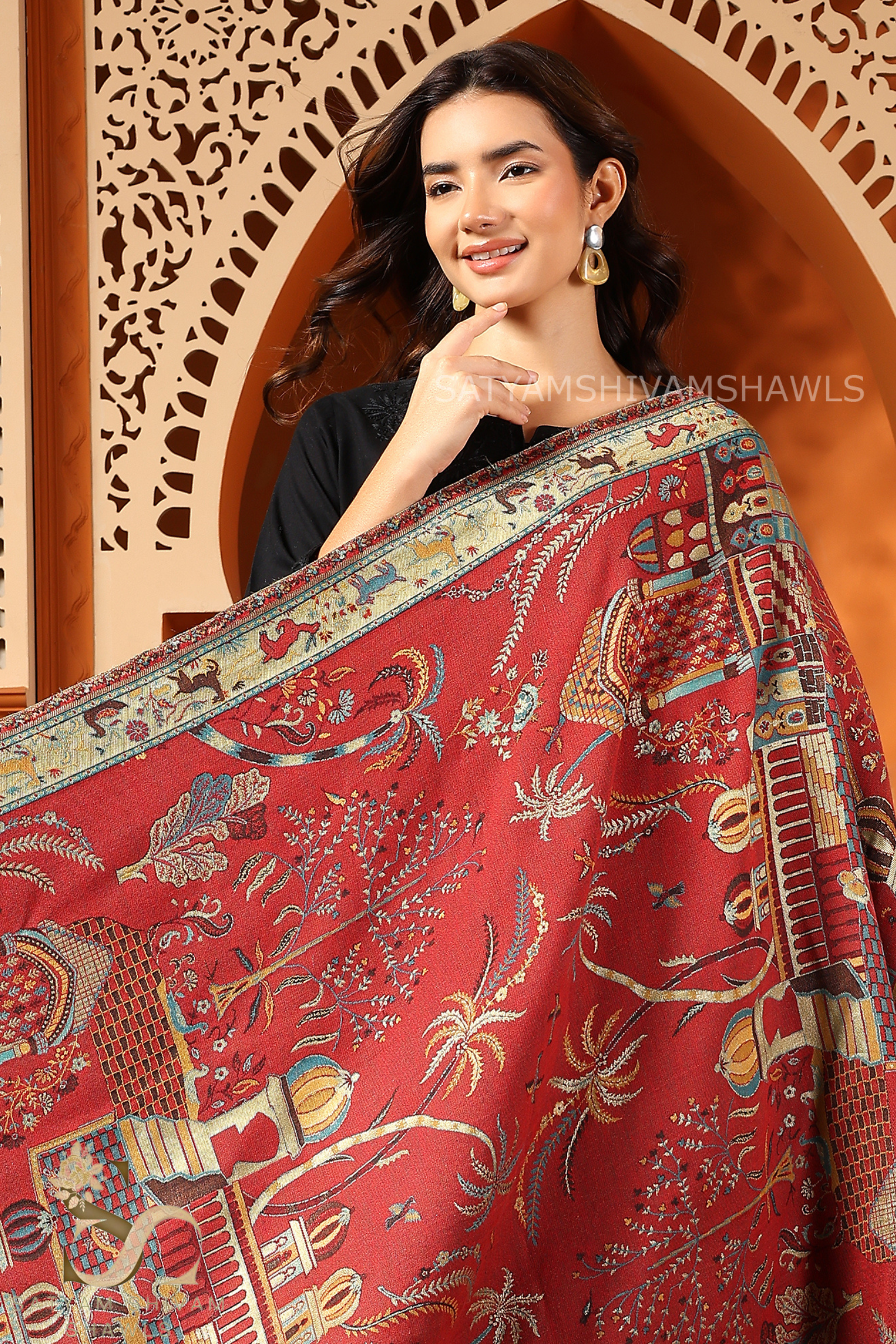 Fine wool pashmina 12 count autentic kani shikar desingn lohi ,big size