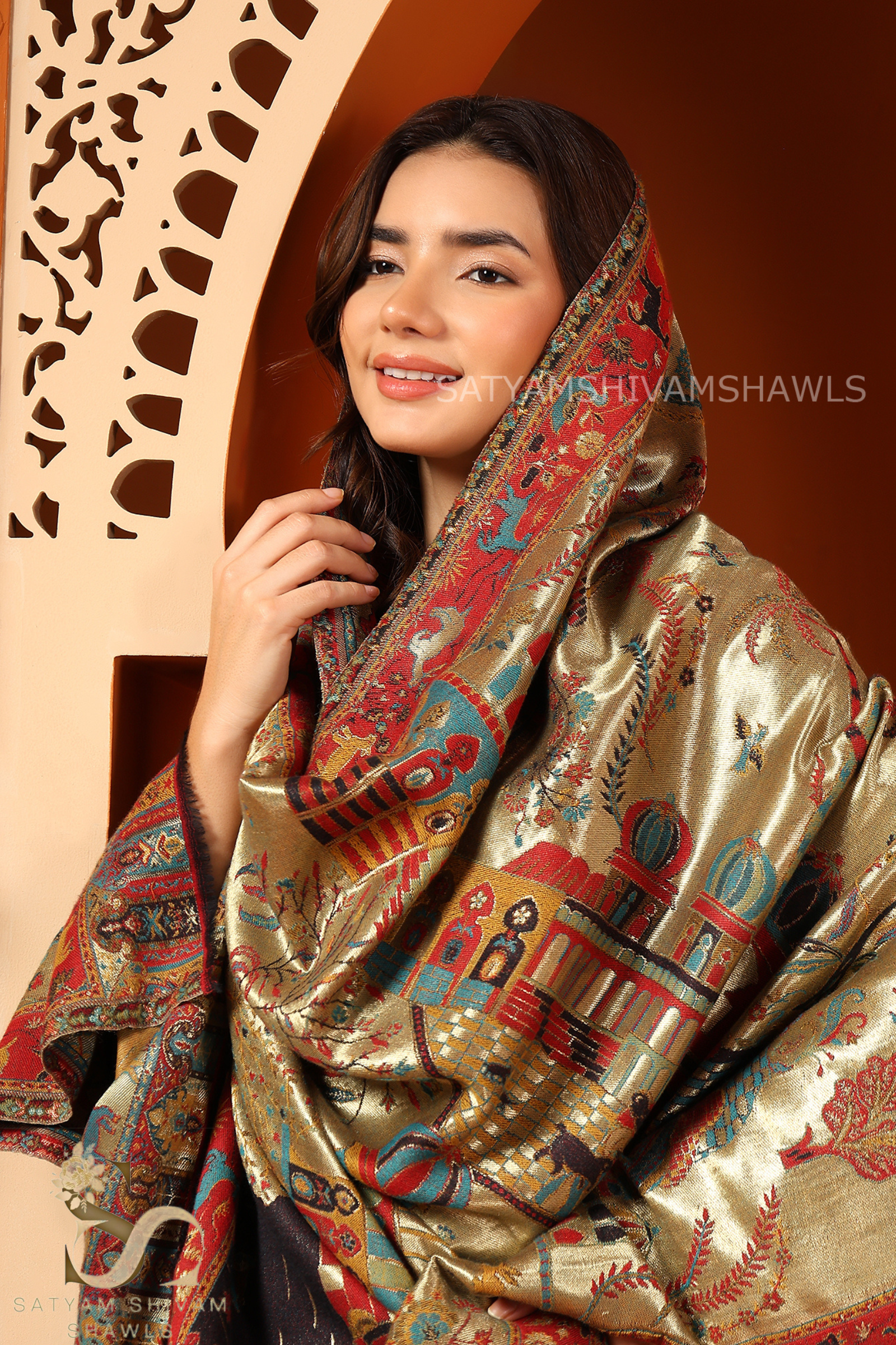 Golden Bloom Taj Mahal Shikar Desingn shawl