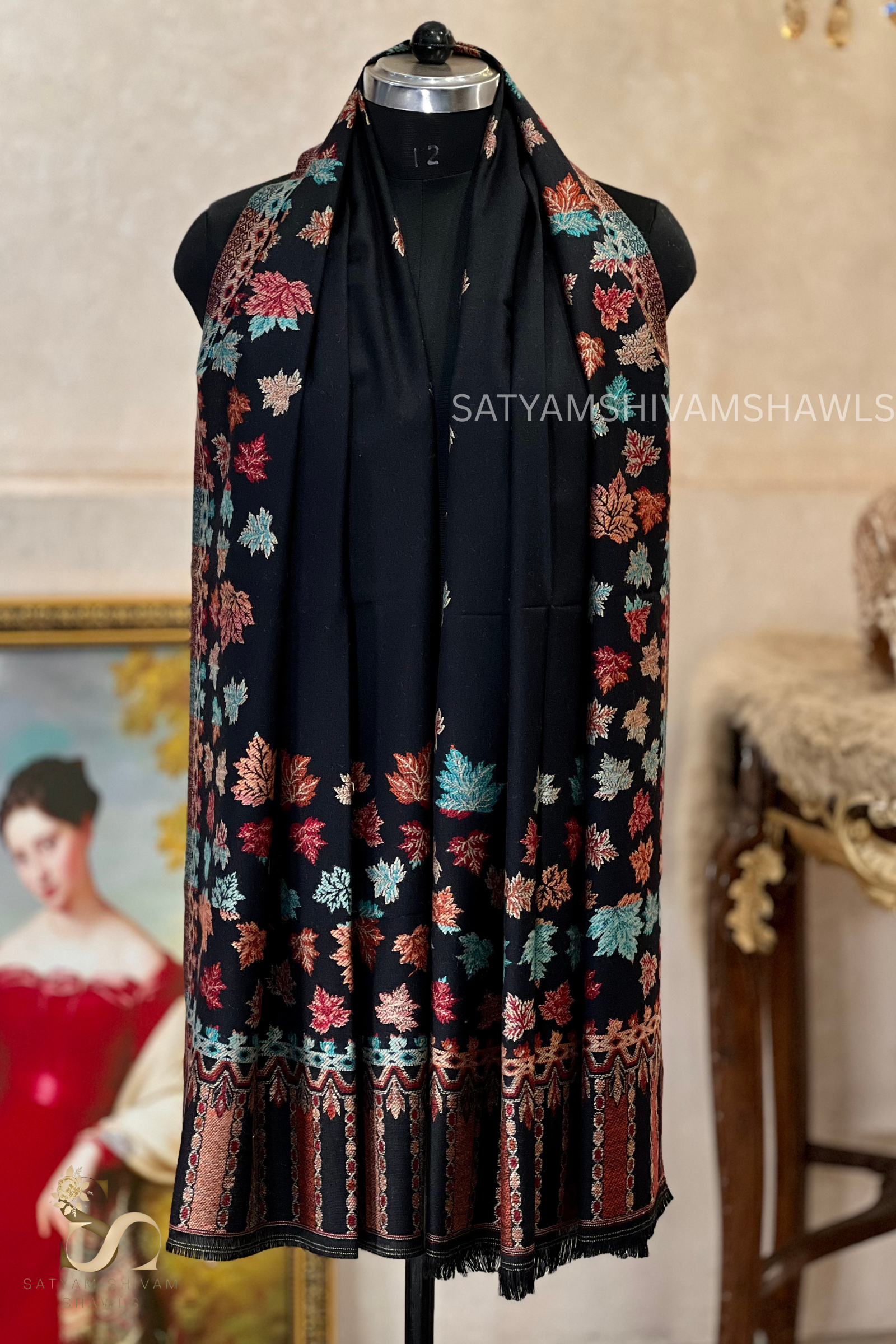 ARABIC ROSE KANI WOVEN LUXURY PASHMINA WOMENS STOLE,BLACK